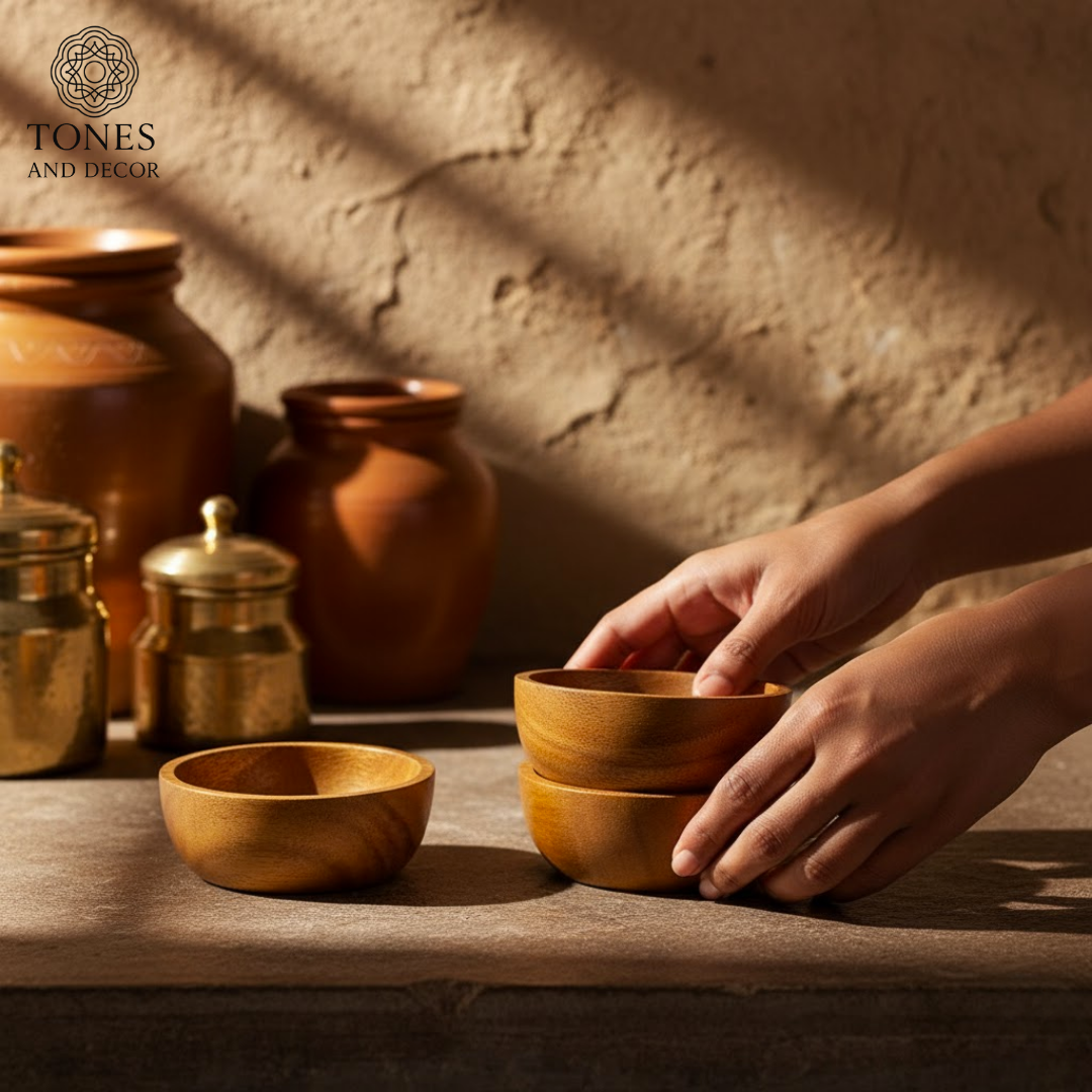 Premium Sheesham Wood Serving Bowl Set (Set of 4) – Handcrafted & Natural Finish
