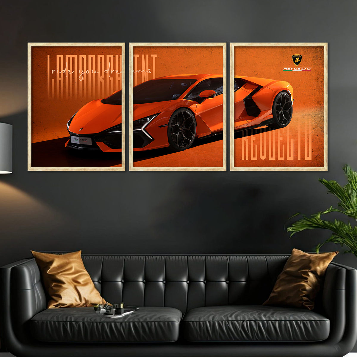 Transform your living space into a sophisticated automotive gallery with this stunning set of three framed Lamborghini wall posters from...