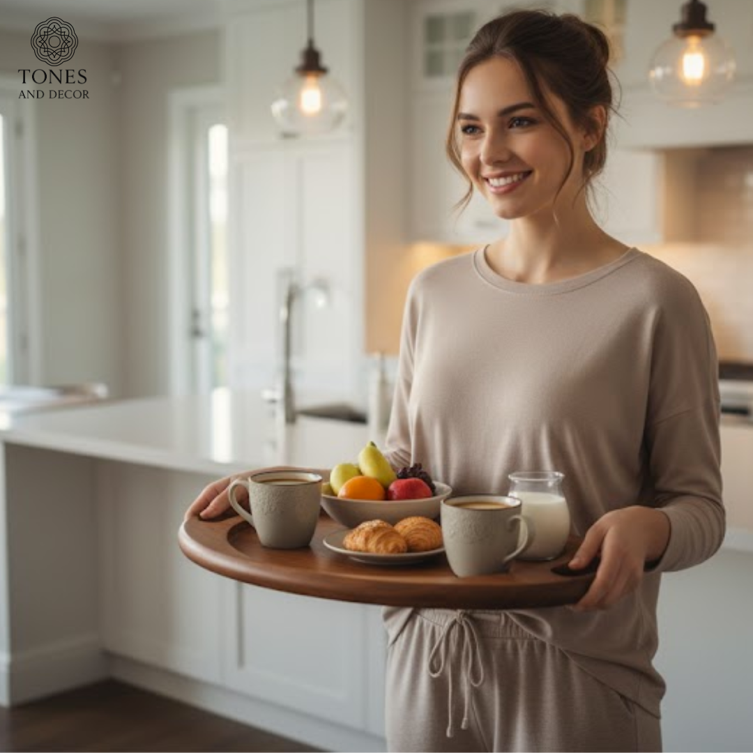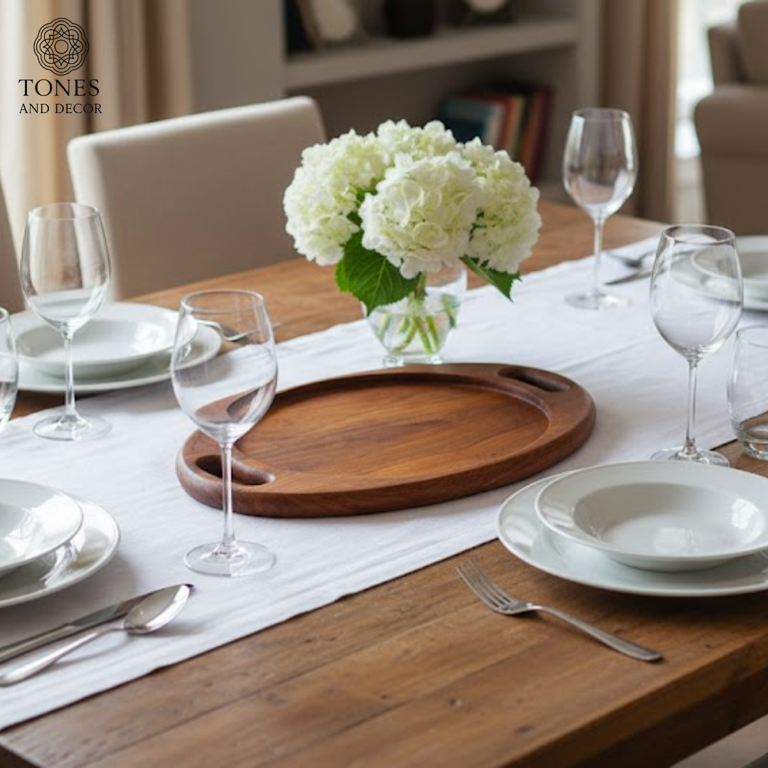 Handcrafted Oval Mango Wood Serving Tray with Handles