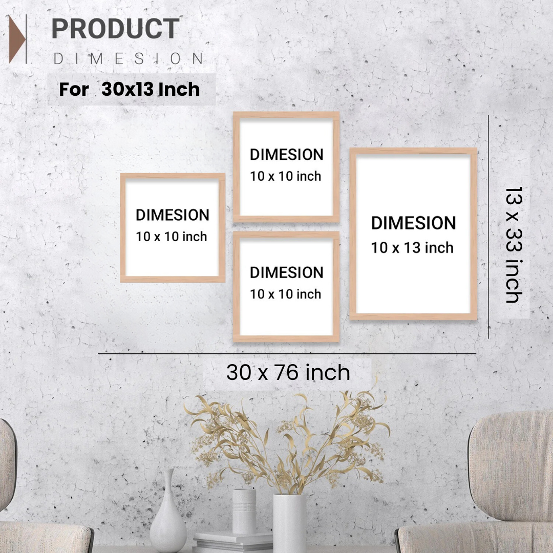 SIZE AND QUALITY Dimension:- 10 inch x 13 inch with 10 inch x 10 and 13 inch x 17 inch with 13 inch x 13 inch Print Quality: The artwork is printed on 300 GSM thick paper with high quality printer and vibrant colours, to give it rich look.